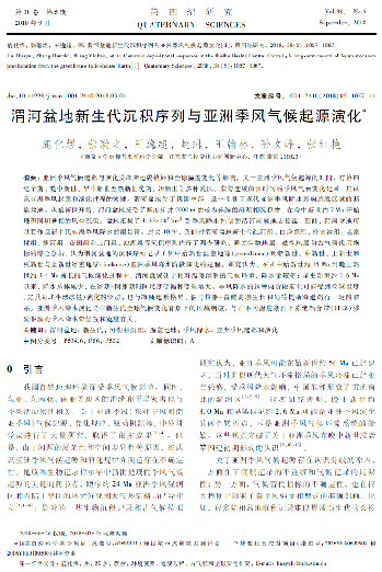 论文信息:鹿化煜, 张瀚之, 王逸超, 赵琳, 王翰林, 孙文峰, 张红艳. 渭河盆地新生代沉积序列与亚洲季风气候起源演化. 第四纪研究, 2018, 38(5): 1057-1067.