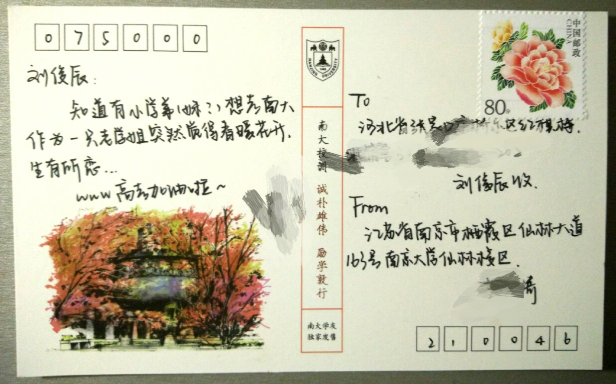 到征集日期截止时,帖子已经被顶到了近300层楼,拥有回复800余条,一度成为南大“热帖”。经统计,我们收到来自全国25个省市自治区170多位初高中同学和7位有志于报考南大研究生的学长学姐的心愿。数量之大,超出了所有活动举办同学的预期,但是,为了不让每一个南大梦留下遗憾,在结束统计工作后,全年级同学迅速积极响应,满怀热血投入到明信片的构写中。5月中旬,近180份明信片已全部从无码a片 仙林校区启程,奔赴全国各地,它们携带着85位诚恳真心的同学诚挚衷心的鼓励和祝福去往远方。