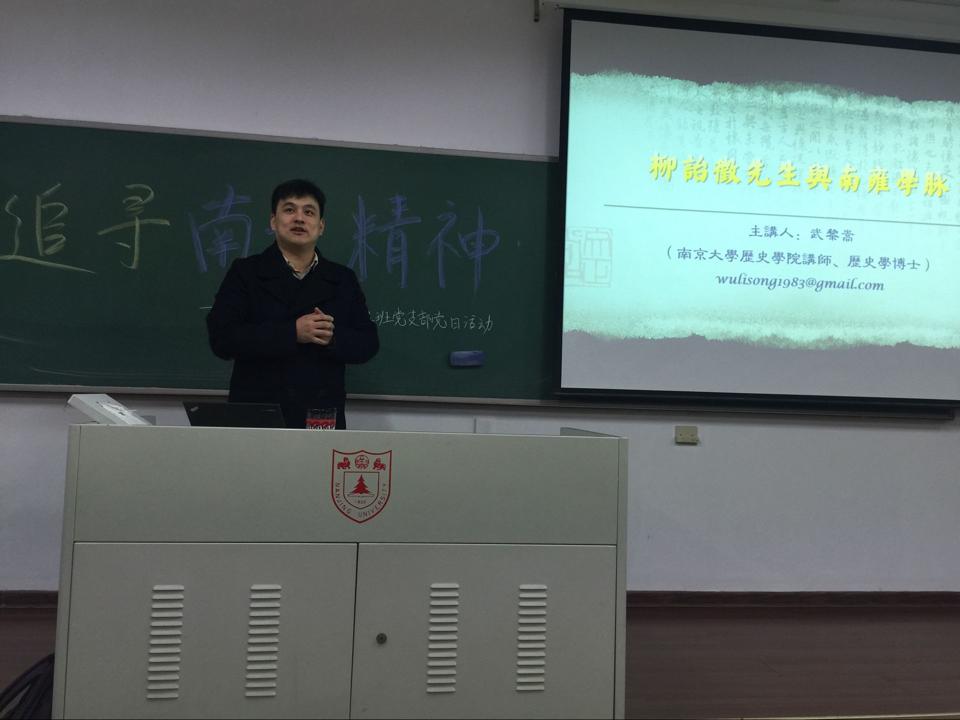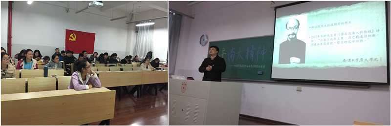 本次党日活动的内容丰富多彩。首先,历史学系武黎嵩老师以“柳诒徵先生与南雍学派”为主题给大家做了四十分钟的演讲。武老师通过一系列的旧照和一件件事迹,为我们讲述了柳仪徵先生严谨持重的治学精神与博雅清高的风骨,实乃南大精神之典范,使我们对南大精神的发展历程有了更深的认识。