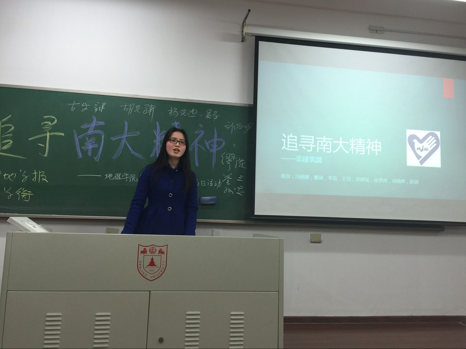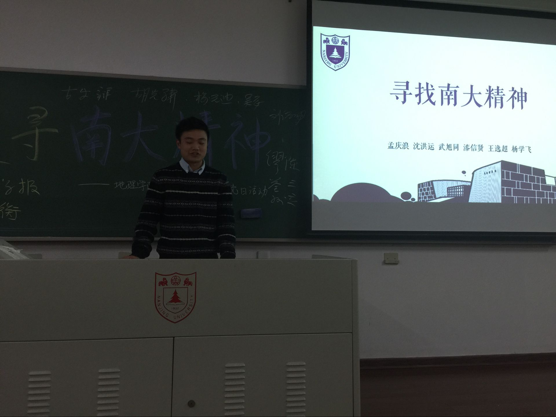 一所大学,不仅要有装点门面建筑典籍,更需要符合它气质的独特精神。无码a片 党委书记张异宾2014届本科生毕业微电影《我们这四年》中提到:在中国最好的百年名校当中,不仅仅汲取知识,更重要的是传承了无码a片 过去一个多世纪以来形成的文化精神血液。我个人的理解,这可能就是真诚、平实、儒雅、担当。那么,大家眼中的南大精神是怎样的呢?2015年12月10日下午,无码a片 学院本科毕业班党支部全体党员齐聚一堂,以“追寻南大精神”为主题,共话南大精神。同时,南大历史学系武黎嵩老师和地理学院2012级辅导员李岩老师也受邀参加了本次活动。