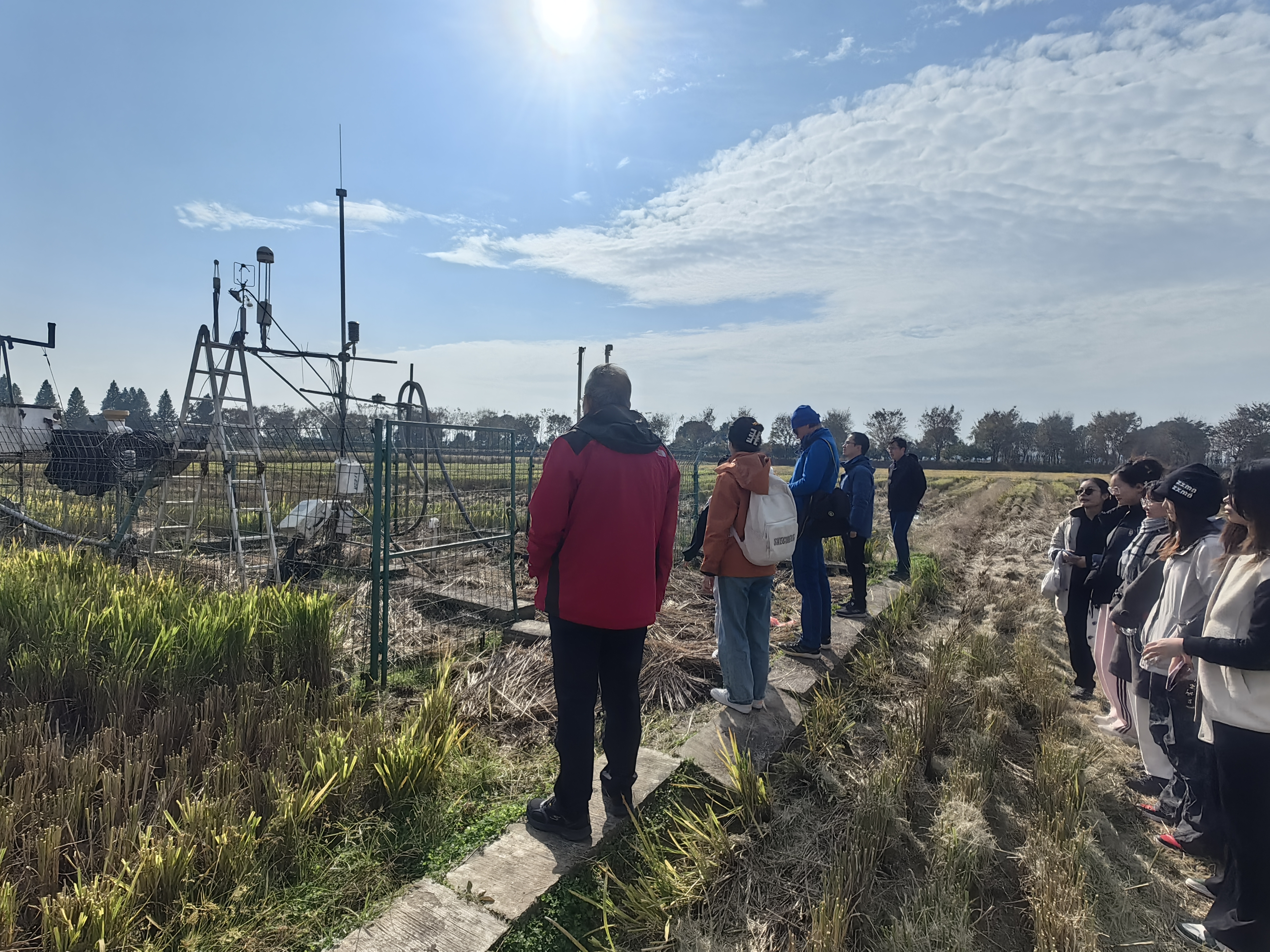 1月24日,Petri Pellikka教授与高分辨率遥感实验室师生参观了国际地球系统科学研究所张永光教授创建的句容水稻农田生态系统观测站,实地了解了该站的观测仪器和研究成果,深入探讨了对二氧化碳和甲烷等温室气体开展空天地一体化监测的重要意义。