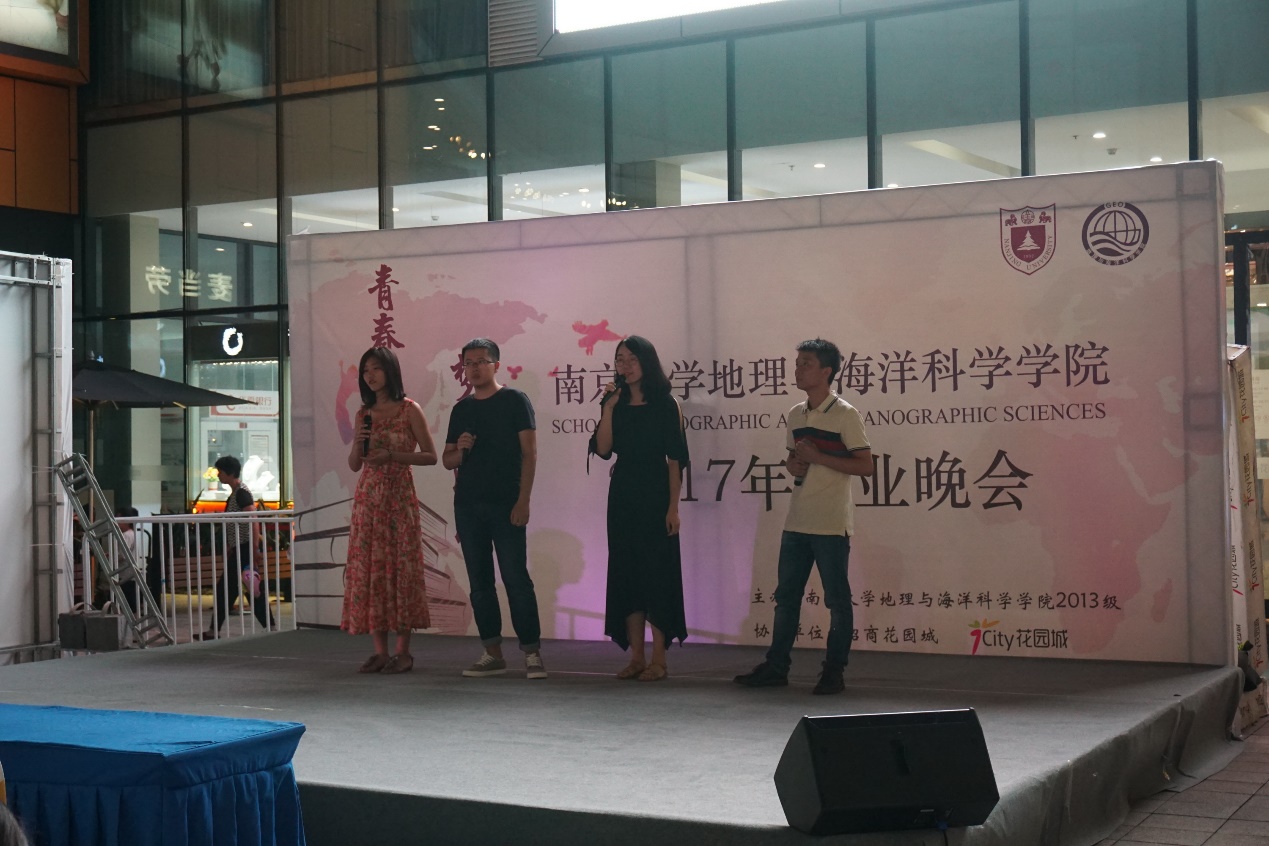 2017611日晚,由我校无码a片 2013级和马群招商花园城联合举办的无码a片 地理学院2017届本科毕业晚会“青春致地,梦寄沧海”在马群招商花园城1F阳光中庭隆重举行。周寅康老师、地理学院13级辅导员周雨霁老师以及地理学院的众多师生共同参加了晚会。