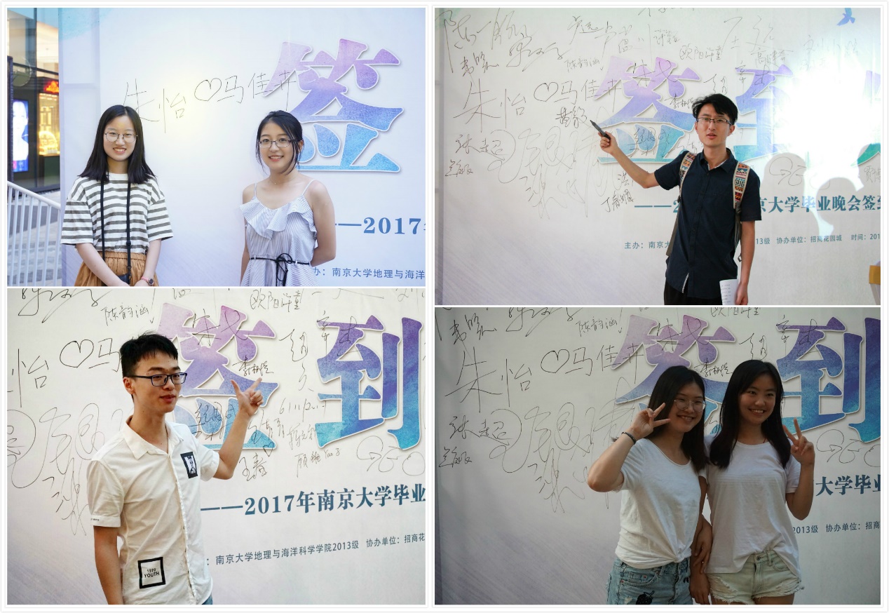 晚会尚未开始,场地周边已经聚集了众多热情的观众,地理学院的师生们在签名墙纷纷签下自己的名字并拍照留念。