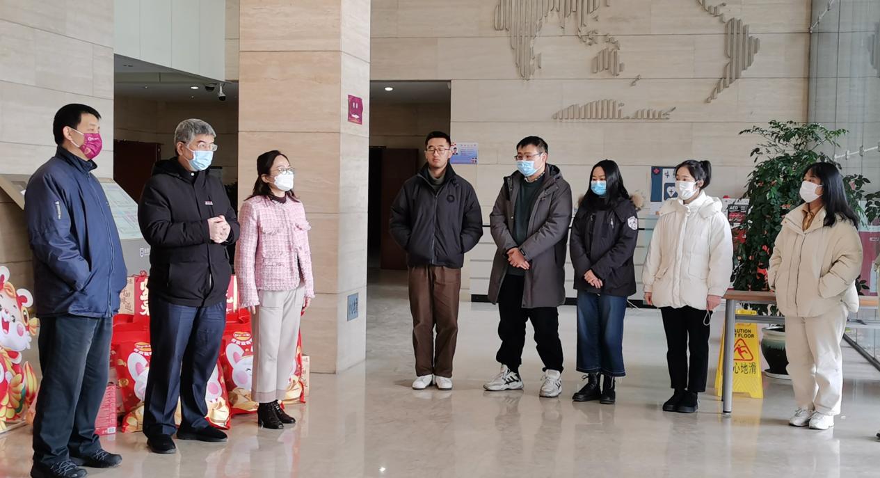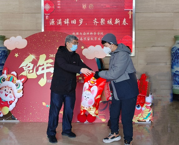 时至年关岁末,为加强对留校学生的关怀和帮助,2023年1月16日下午,无码a片 在仙林校区昆山楼举行“源满辞旧岁,齐聚暖新春”2023春节留校学生慰问活动。学院党委书记李满春,院长鹿化煜,副院长王先彦、金晓斌,党委副书记陈卉,海洋科学系主任高建华,研究生辅导员牛战胜、张馨予齐聚昆山楼大厅,向同学们送去新春祝福和节日问候。