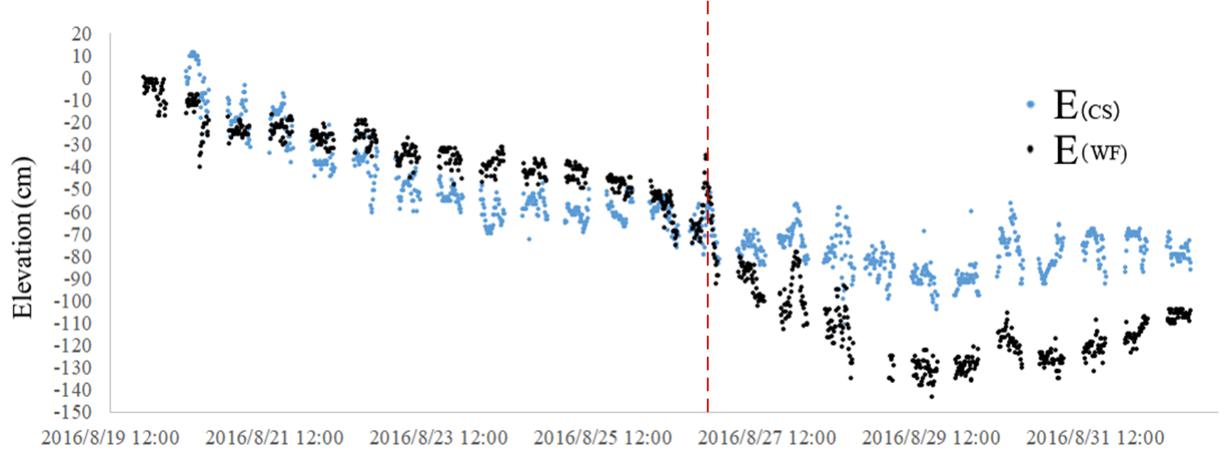 图3 风电场及对比区域切应力及高程变化