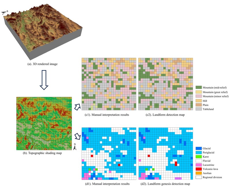 地貌是地球表层内外营力长期作用的产物,其形态特征与成因机制的有效识别,对理解地表过程、环境演变及行星地貌对比研究具有重要意义。传统地貌解译多依赖专家经验与有限数据,在效率与可扩展性方面存在局限。随着多源地理空间数据的快速增长,如何协同利用这些异构数据,实现地貌类型及其成因的自动化、高精度、可解释识别,已成为地理学与信息科学交叉领域的前沿问题。