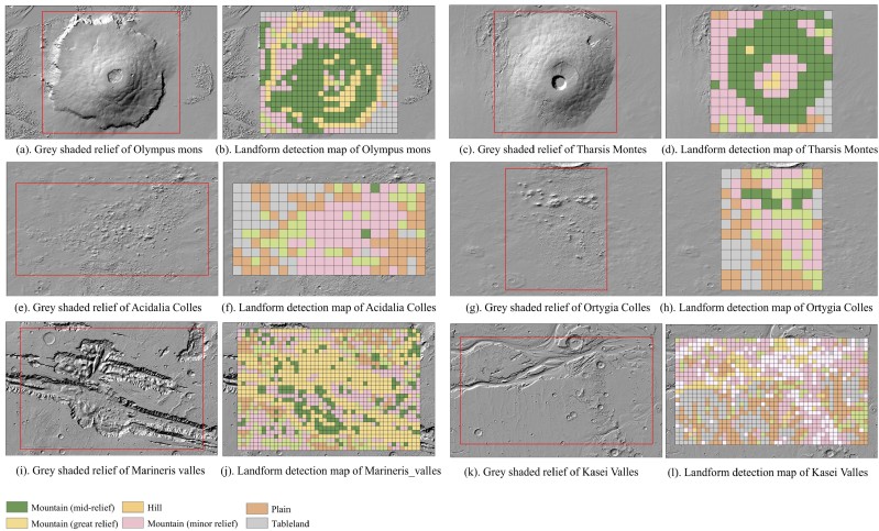 图3. 利用该方法对青藏高原及火星试验区进行地貌及其成因制图