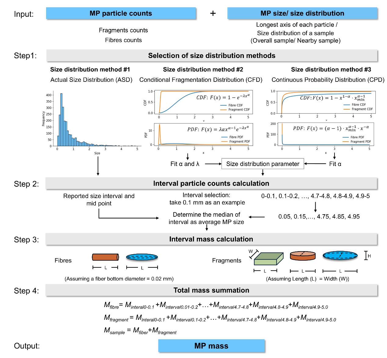 Chen, H., Tao, J., Wang, T., Ding, Y., Song, Y., Weston, K., Yuan, F., Fu, G., Taylor, D., & Zou, X. (2025). An Accurate Size-Probability Distribution Method for Converting Microplastic Counts to Mass. Environmental science & technology, //doi.org/10.1021/acs.est.5c12243