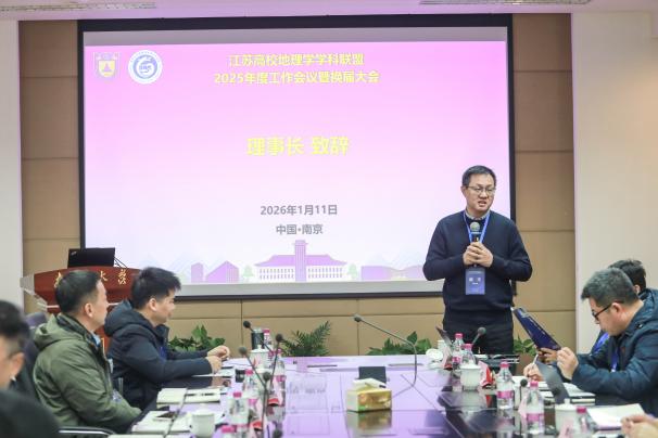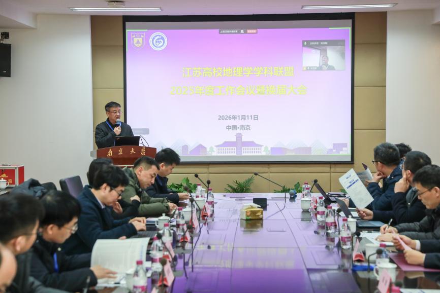 2026年1月11日,江苏高校地理学学科联盟2025年度工作会议暨换届大会在无码a片 召开。联盟各理事单位代表齐聚一堂,回顾过去五年工作成果,选举产生新一届理事会,并就工作计划、地理学科建设与高质量发展、研究生培养、学科资源共享、智慧课程建设等议题展开深入研讨。