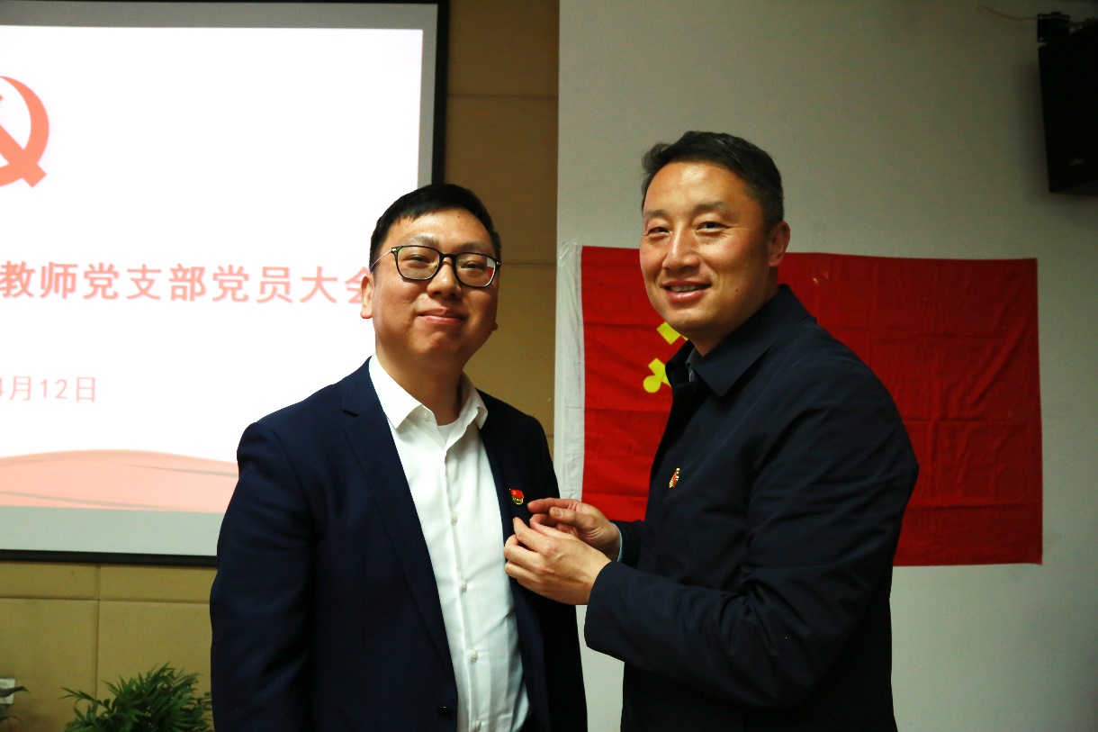 经无记名投票表决,全体党员一致同意接收张宏磊同志为中共预备党员。在热烈的掌声中,金晓斌副院长为张宏磊同志佩戴党徽。