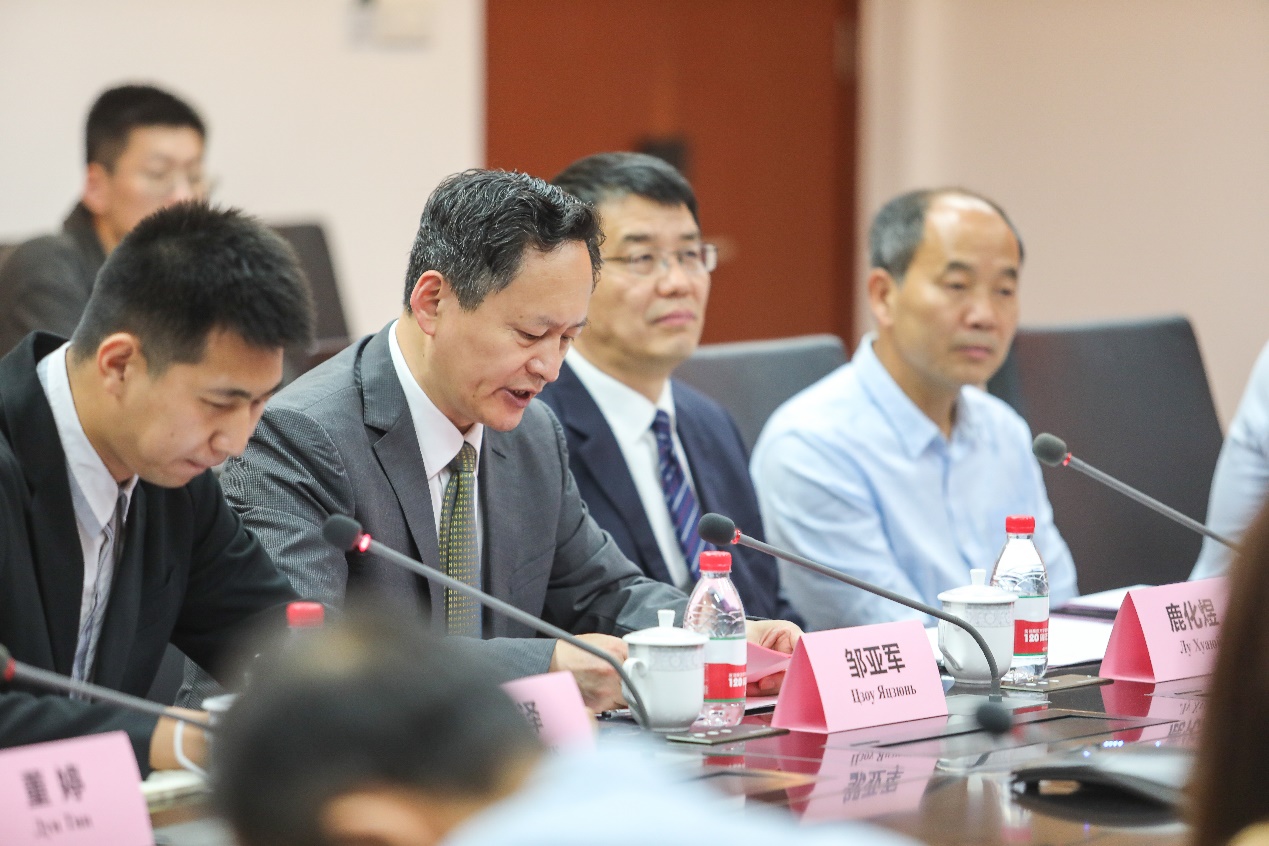 图1 邹亚军副校长致欢迎辞并祝贺双方科技合作取得新成果