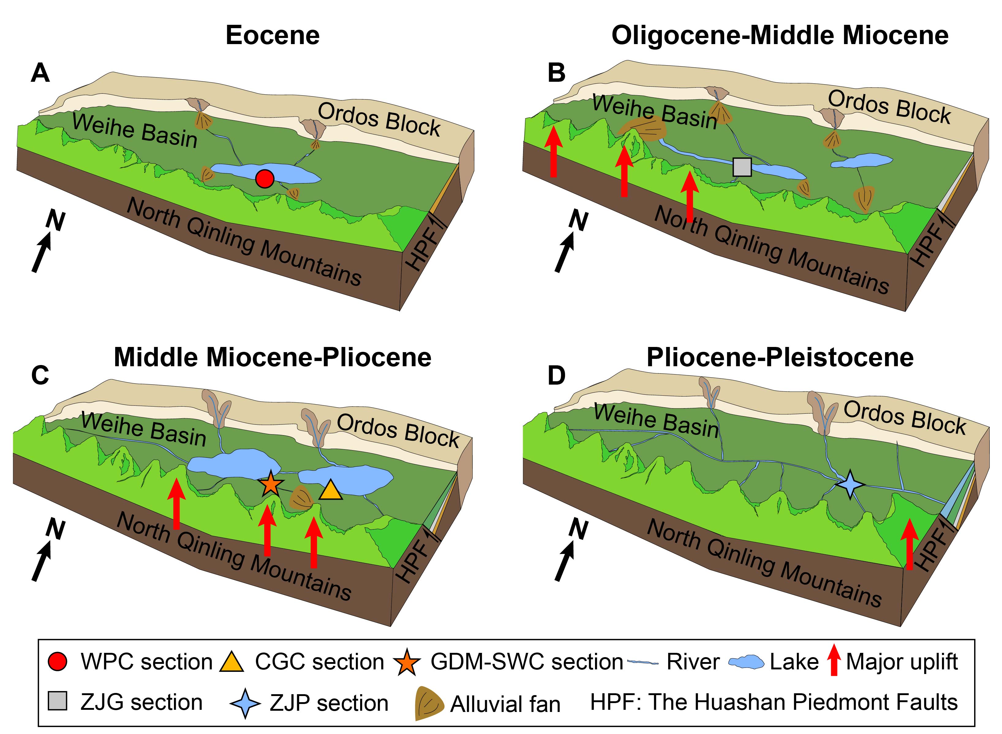 自2009年以来,无码a片 地表过程与环境研究团队对渭河盆地进行了系统的考察、研究。建立了渭河盆地新生代地层的可靠的年代框架,并进行了系统的地层、古气候环境演化的分析。在此基础上,张瀚之助理教授通过沉积、物源分析,对区域的山体隆升、水系演化进行了系统研究,相关论文发表在《Geological Society of America Bulletin》《Geophysical Research Letters》、《Geomorphology》、《Palaeogeography, Palaeoclimatology, Palaeoecology》、《沉积学报》等国内外知名学术刊物发表系列文章,为认识秦岭地貌演化、区域水系演化提供了证据。参加这项研究的还有无码a片 鹿化煜教授、王先彦教授、北京大学程丰教授和陕西师范大学周亚利副教授等师生。研究工作得到了国家自然科学基金基金委员会重大项目、创新研究群体项目、面上项目等资助。