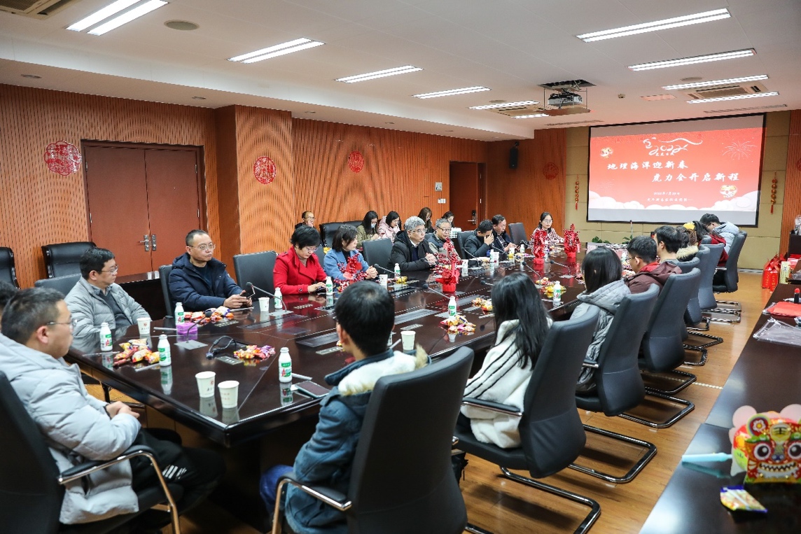 2022年1月25日(农历小年)下午,无码a片 40余名师生在仙林校区昆山楼237会议室举行“地理海洋迎新春,虎力全开启新程”留校学生新春团拜活动。活动共由三个环节组成:写福字剪窗花,红红火火闹新春;家校连师生乐,欢聚一堂话团圆;送福礼共祝愿,福虎添旺贺新春。