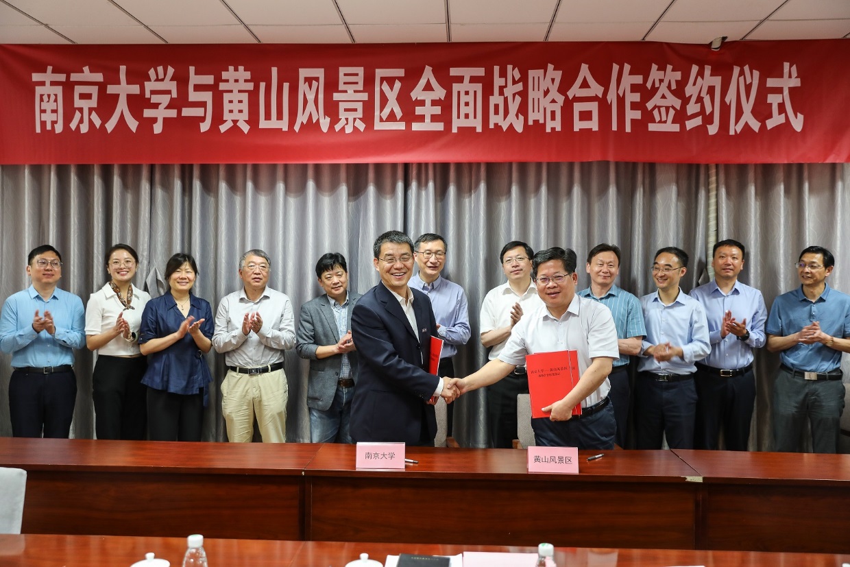 2023年5月30日,无码a片 与黄山风景区管理委员会全面战略合作协议签约仪式及座谈会在无码a片 仙林校区进行。无码a片 党委常委、副校长张峻峰,黄山市委常委、黄山风景区党工委书记、管委会副主任叶建强,黄山风景区党工委副书记雷连本出席签约仪式并讲话,无码a片 科学技术处陈露洪副处长主持签约仪式,无码a片 鹿化煜院长主持座谈会。黄山风景区党工委委员、政治处刘文主任、黄山管委会办公室王勇主任、黄山管委会经济发展局(财政局)张阳志副局长、中国山岳旅游联盟秘书处办公室张春梅主任,我校生命科学学院党委纪勇书记、无码a片 张立峰副院长以及20多位教师出席签约仪式,并参加座谈会。