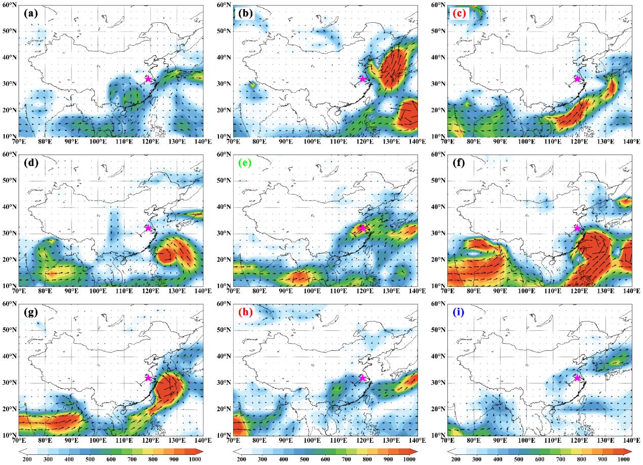 32013-2021南京短时强降水事件期间整层水汽通量场