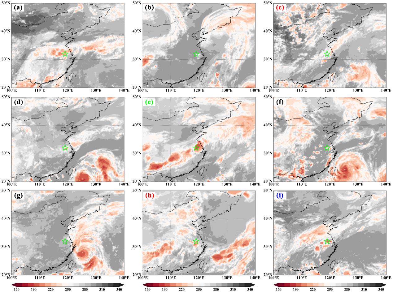 22013-2021南京短时强降水事件期间小时尺度卫星相当黑体温度的空间分布