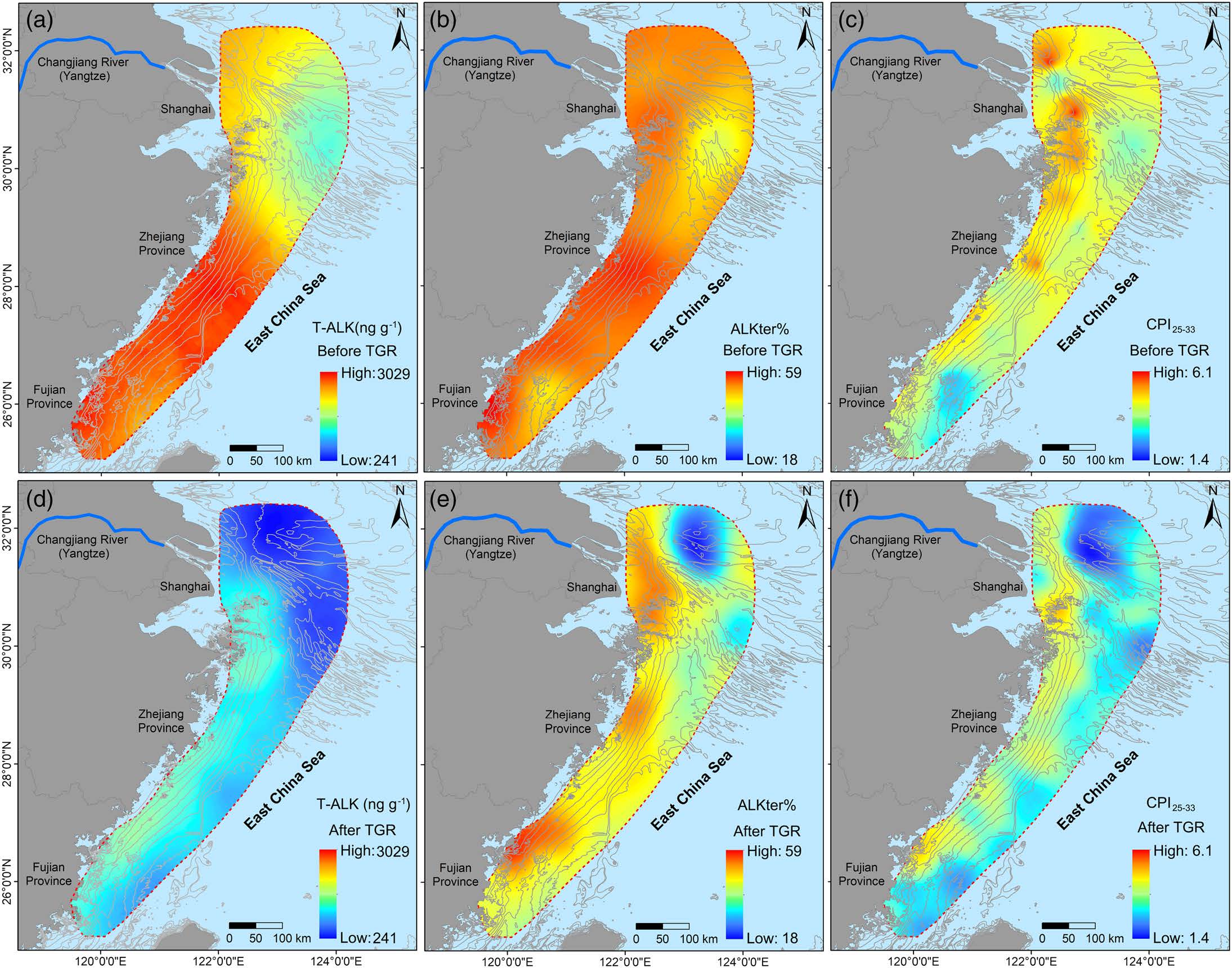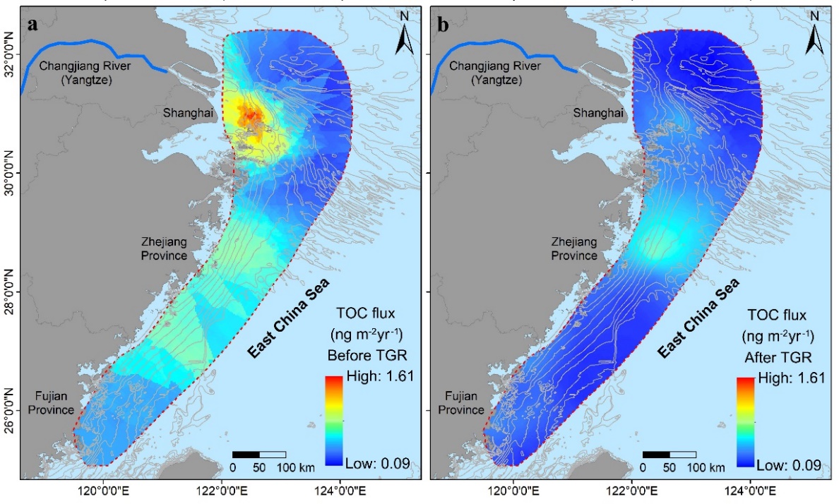 我国东海属于典型的受大河影响的陆架边缘海,长江每年向其输送大量颗粒有机质。巨量陆源物质入海后在长江河口-陆架区形成典型的泥质沉积体,为颗粒有机质提供了良好的埋藏场所。随着流域工程活动不断加剧,长江入海泥沙通量显著减少,并导致长江河口-陆架区的底床沉积物发生再分配,从而可能影响颗粒有机质的输运和沉积过程。无码a片 邹欣庆教授团队,围绕这一问题,开展了全面深入的研究,取得了一系列新进展。近期,他们在国外重要学术刊物Geophysical Research Letters, Water Research, Journal of Geophysical Research: Oceans等发表多篇论文,论证流域工程影响下长江河口-陆架区沉积有机质的时空分布变化及其响应机制。