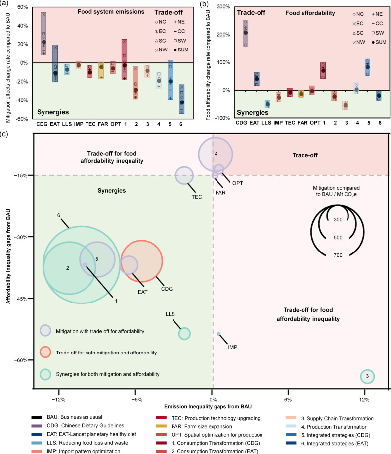 图3食物系统综合减碳策略在碳排放、可负担性和不平等的协同与权衡