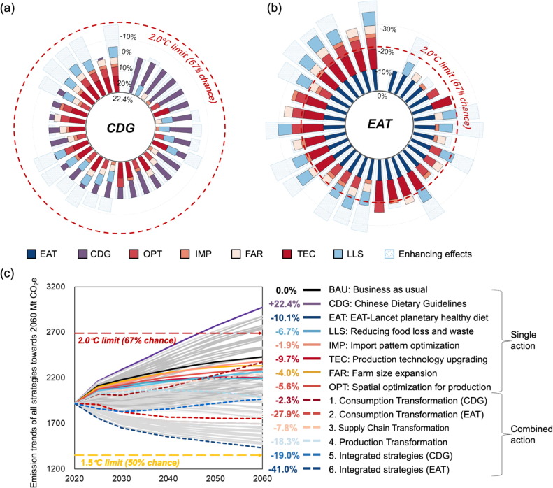 图2中国食物系统碳减排综合情景的减碳效果及其协同增强效应