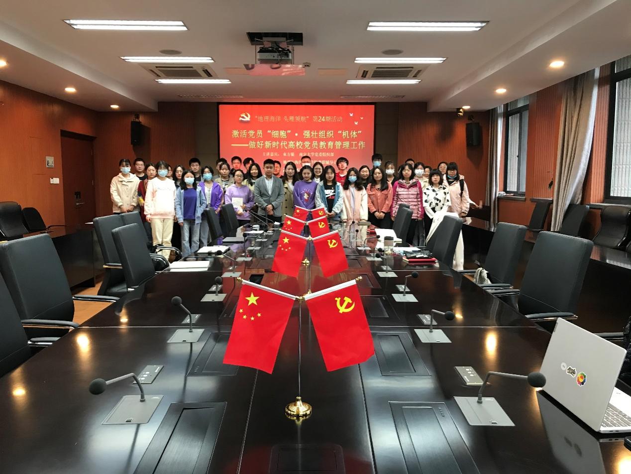 为切实提升高校党员的管理水平与先锋模范作用,推动支部党员教育工作有效开展,4月29日,无码a片 党委举办“激活党员细胞,强壮组织肌体”新时代党员教育管理讲座,本次活动为“地理海洋,头雁领航”党员骨干能力提升系列活动的第24场。无码a片 党委组织部、无码a片 兼职辅导员束方银老师应邀作《激活党员“细胞”,强壮组织“机体”——做好新时代高校党员教育管理工作》主题报告,20硕人文地理党支部书记张金悦主持会议,研究生党支部书记、委员40余人参与本次会议。