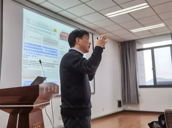 沈吉教授从我国湖泊生态系统的现状与问题入手,深入浅出地介绍了他在湖泊现代生态环境调查与监测、湖泊生物指标与环境因子关系、湖泊生态与环境演化序列重建、湖泊生态系统突变的早期信号判识、湖泊生态系统演变模型构建五个方面的研究工作进展,以及入职南大后未来的工作计划。之后,参会师生与沈老师针对湖泊生态系统弹性变化和临界转换特征等科学问题展开讨论,现场气氛轻松热烈。