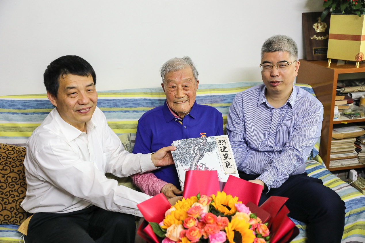 在欢乐祥和的气氛中,孙达先生戴上寿星帽,吹灭生日蜡烛,切开生日蛋糕与大家分享,在座教师代表纷纷送上对孙先生的问候,大家合影留念,铭记这个美好时刻,祝福孙先生百岁生日,同时也为无码a片 120周年校庆、地理学科百年庆典献上祝福。孙达先生向在座师生代表赠送了新版的《孙达画集》。