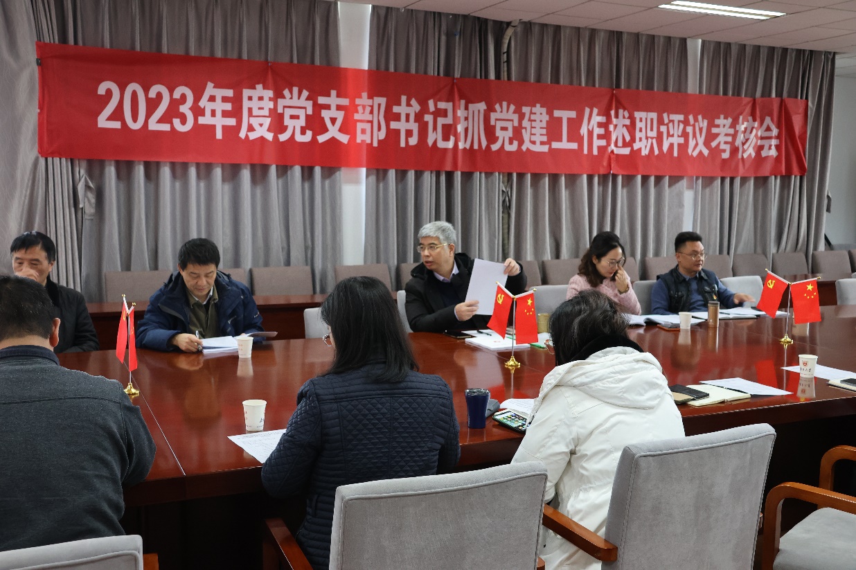 现场述职阶段,采取“一述一评”的方式,各党支部书记围绕党支部深入开展学习贯彻习近平新时代中国特色社会主义思想主题教育、党支部规范化建设、党员先锋模范作用、推动事业发展,为师生办实事等方面,结合本年度支部各项工作,就履职情况、存在问题及原因、下一步工作思路和举措等进行了总结汇报。联系支部的党委委员进行点评,各位委员充分肯定了各支部在2023年度开展的工作和取得的成效,针对支部工作存在的不足及改进措施提出了意见和建议。