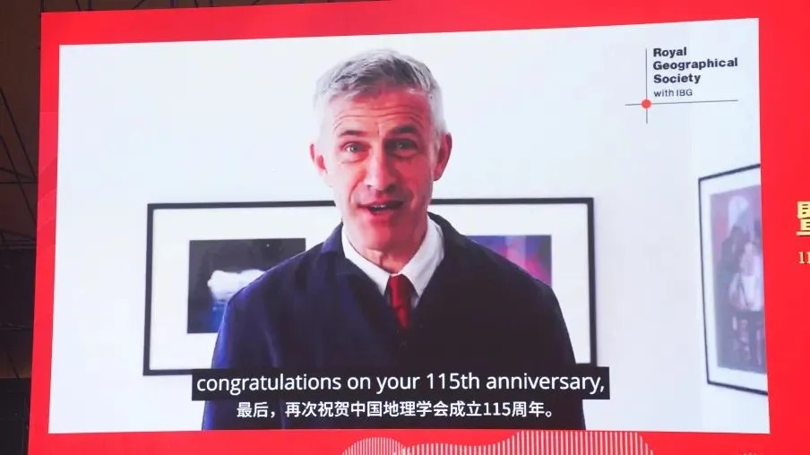 英国皇家地理学会总干事 Joe Smith 在祝贺视频中表达了对中国地理学会成立115周年的祝贺,期待中国地理学会与英国皇家地理学会在未来抓住机遇、深化合作。