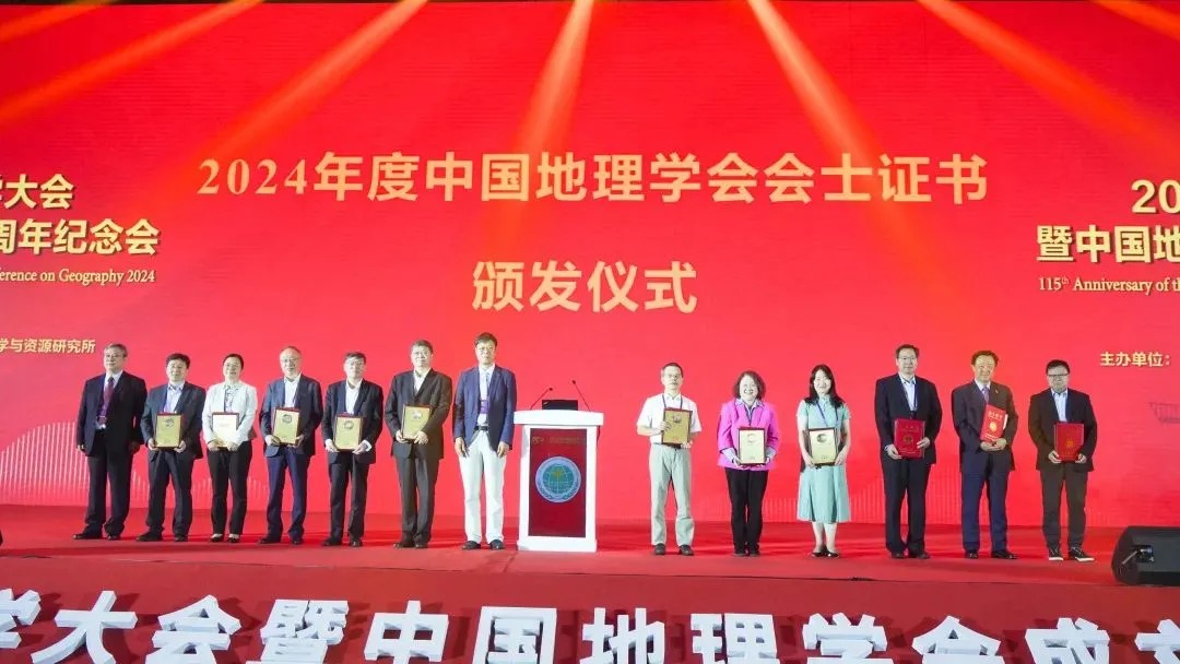 中国地理学会副秘书长王岱宣读了中国地理学会关于授予陈曦、成秋明、方创琳、勾晓华、黎夏、刘卫东、闾国年、史培军、宋长青、王艳芬、吴丰昌、杨桂山、赵鹏军等13人中国地理学会会士,授予Lily Kong、Mei-Po Kwan、John P.Smol 等3人中国地理学会外籍会士的决定,陈发虎理事长为新增选会士颁发证书和证牌。