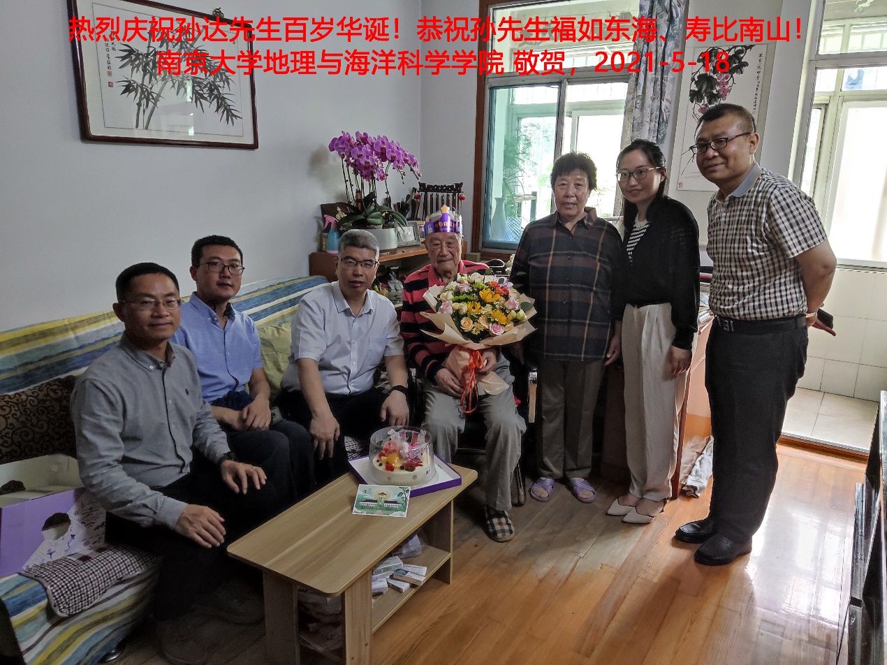 在喜迎无码a片 建校119周年、地理学科办学百年之际,无码a片 师生喜逢学院孙达先生百岁生辰。5月18日上午,在党委书记李满春教授带领下,学院党委、行政及教师代表6人,专程来到北京西路二号新村孙达先生的家里,敬呈鲜花、蛋糕与果篮等礼品,及全院师生的殷切心意,为老人送上百岁寿诞的美满祝福。