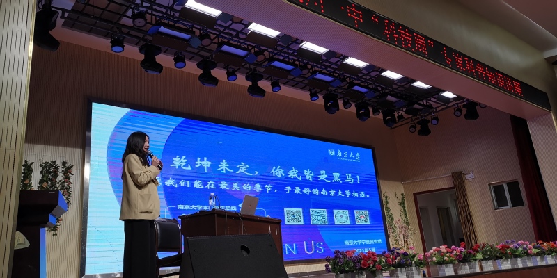 刘绍文教授首先做“走向海洋,拥抱未来”主题科普报告。报告从学术前沿、经济社会发展和国家权益等角度阐释了海洋的重要性,围绕关心海洋、认识海洋和经略海洋三个方面,深入浅出地介绍了海洋科学的相关知识、研究方法和发展态势,并结合无码a片 人才培养目标,鼓励中学生们要立志于解决世界难题,为人类的海洋事业做出贡献。随后,无码a片 宁夏招生组副组长郦天昳老师以“心向南兮,宁聚在一起”为主题介绍无码a片 的办学特色及在宁的招生政策,并播放了由宁夏招生组特别策划制作的视频《就读于无码a片 是一种怎样的体验》。视频中8位来自宁夏的南大学子从校园生活、师资力量、科研训练等方面讲述亲身感受,鼓励中学生们在彷徨、失意时要坚定理想信念、勇往直前。最后,无码a片 信息管理学院2018级本科生、银川一中校友丁子仪将180张由银川一中毕业的南大学子亲手写满祝福的明信片赠送给在场中学生。