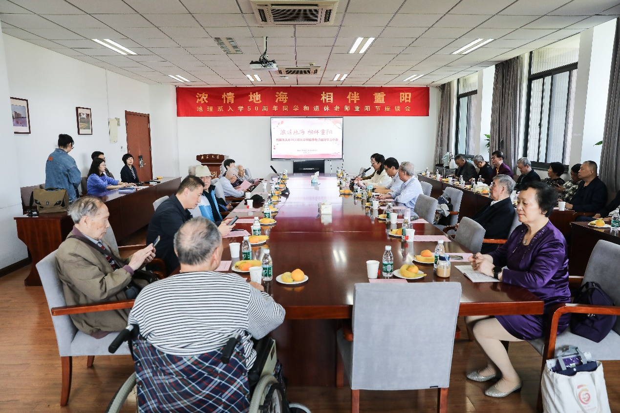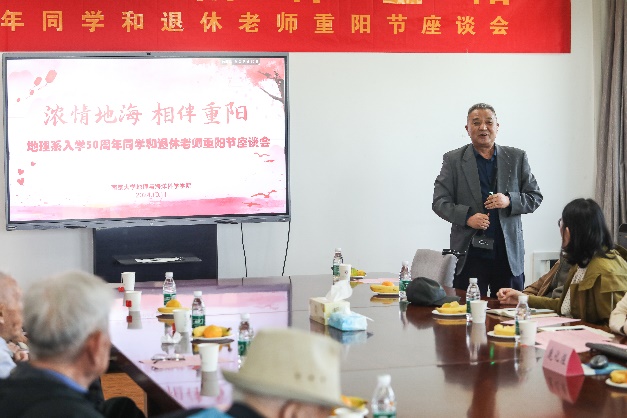 正逢重阳佳节和1974-1975级地理系校友返校日,为表达对退休教师无私奉献与卓越贡献的敬意,深化校友间的交流沟通,共续校园美好记忆,激励在校学子传承尊师重教的传统美德,无码a片 于10月11日上午在昆山楼会议室举办了退休老师重阳节暨地理系同学入学50周年校友座谈会,共抒深情厚谊,同绘发展宏图。本次座谈会由学院15位退休老师与1974-1975级友参加。院长、党委书记鹿化煜,党委副书记陈卉,副院长金晓斌,代理副院长工作的周雨霁,学院办公室张勤主任、骆琼等老师出席了座谈会。座谈会由党委副书记陈卉主持。