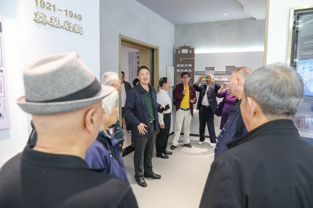 座谈会前,在副院长金晓斌的带领下,校友们和退休老师一起参观了院史馆,共同回忆地理百年荣光,展望奋进新征程。